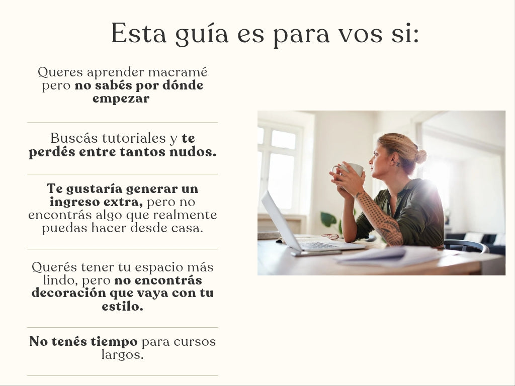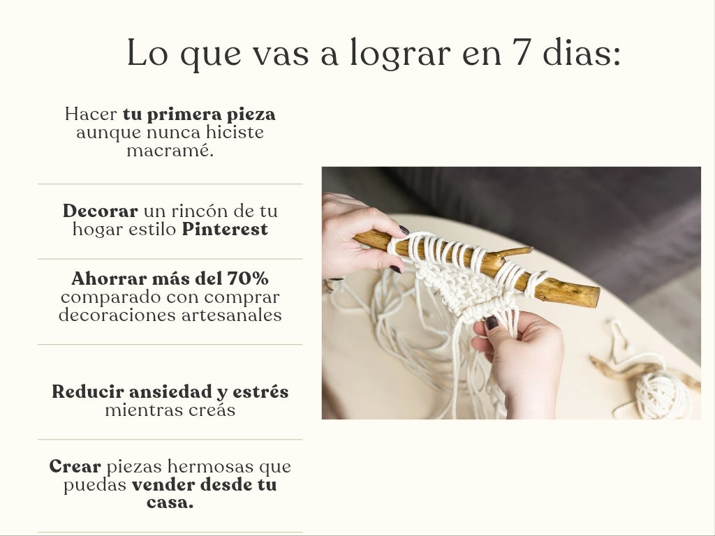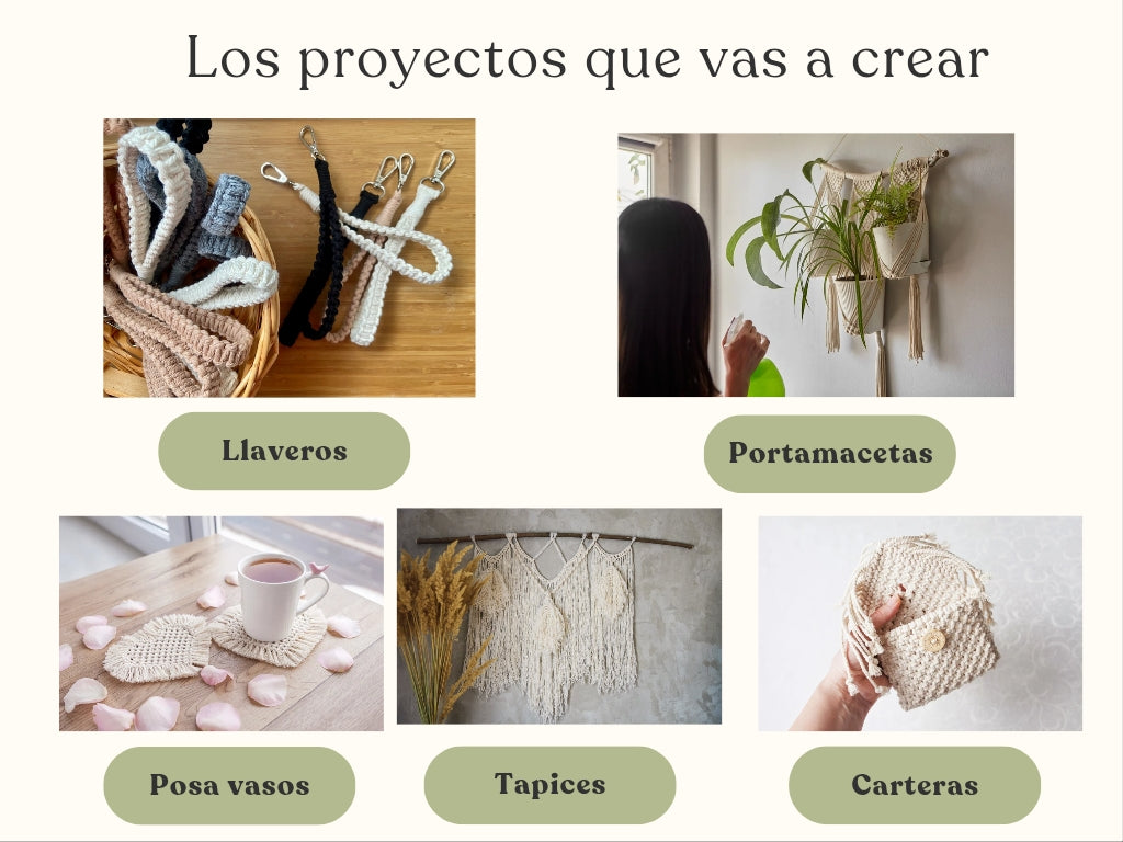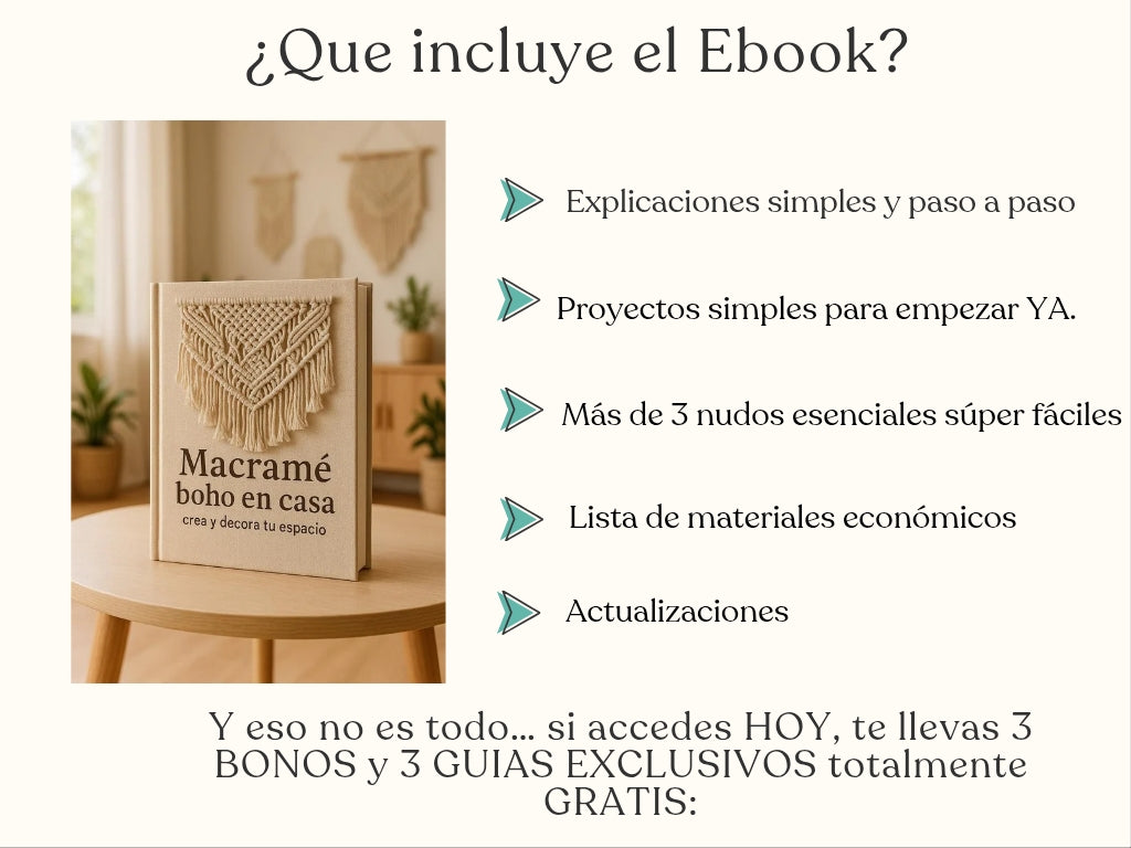 Llevate el ebook + 6 bonos exclusivos para crear tus primeras piezas de macramé y empezar tu camino a emprender desde casa con tus propias manos.